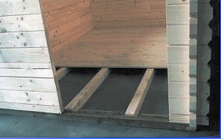 Die Höhe der Decke ist variabel. Wird der Schlag mit Rosten ausgerüstet, kann die Decke ganz oben monriert werden, so dass unter den Rosten bis zu 20 cm Luft verbleibt.